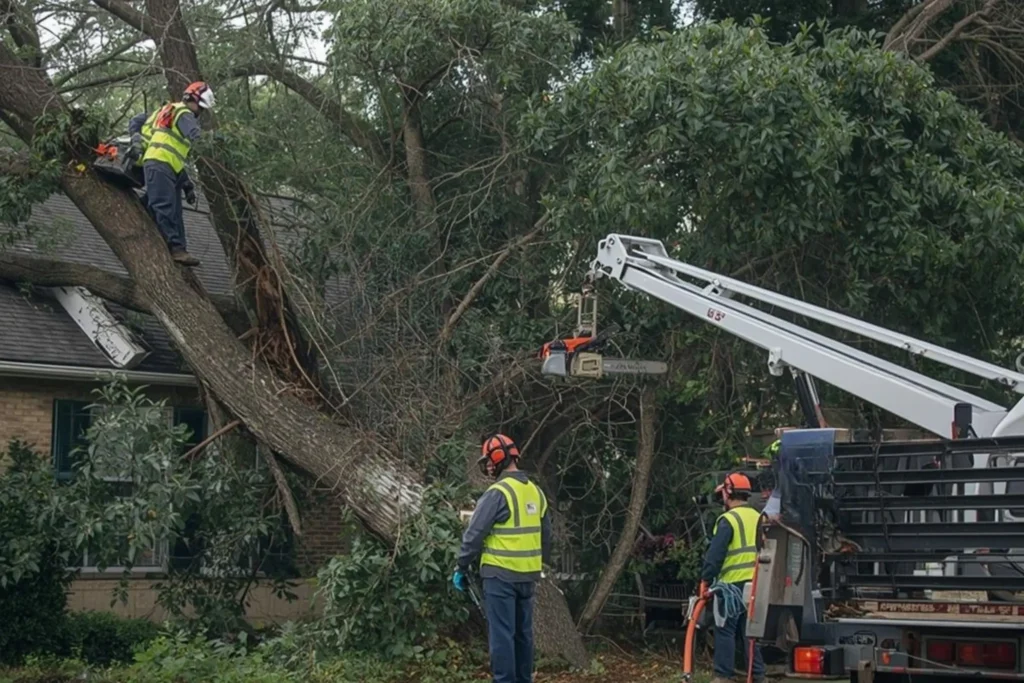 It includes assessment, removal of dangerous limbs, complete tree removal if necessary, and post-storm safety measures.